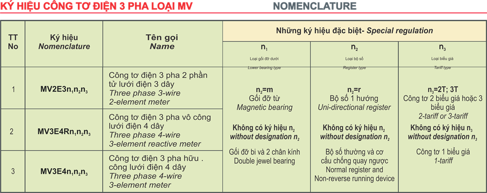 Công tơ điện 3 pha loại MV có đặc tính và độ tin cậy cao, dùng để đo năng lượng dạng hữu công (kWh) hoặc năng lượng vô công (kvarh) ở lưới điện xoay chiều 3 pha 3 dây hoặc 3 pha 4 dây. Công tơ MV gồm có loại công tơ 3 pha 2 phần tử và 3 pha 3 phần tử: