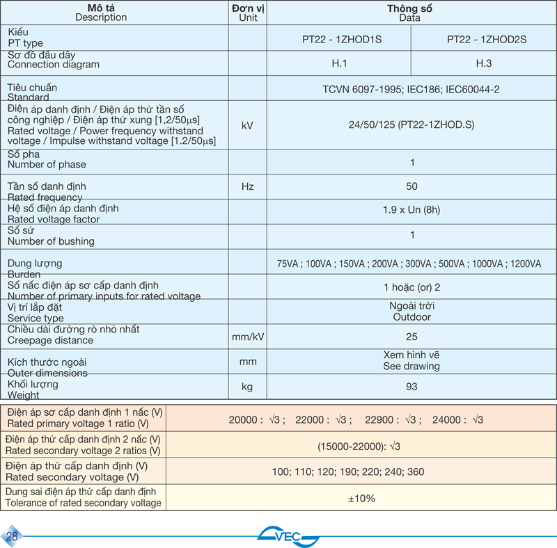 Máy biến áp cấp nguồn trung thế 1 pha ngoài trời kiểu ngâm dầu - Model PT22 - 1ZHODx