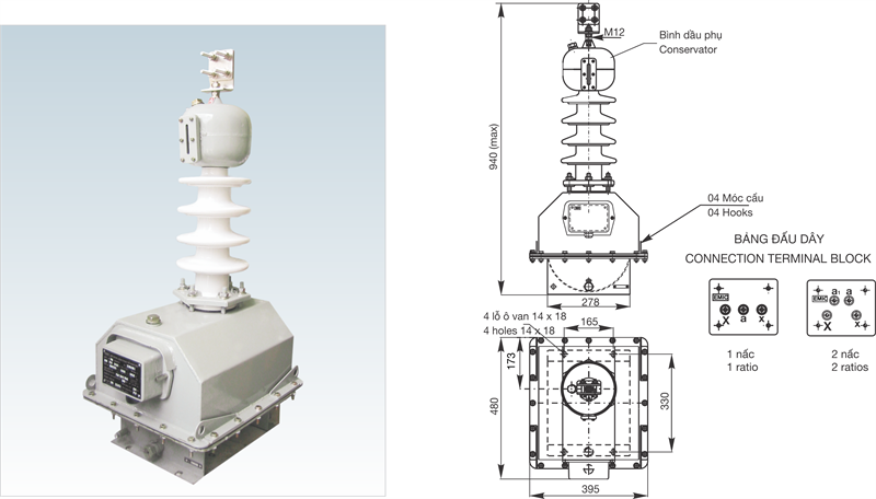 Các đầu ra thứ cấp được nối liền với thân máy (loại đúc epoxy, composite) được bảo vệ bằng hộp đấu dây có nắp che bằng nhôm