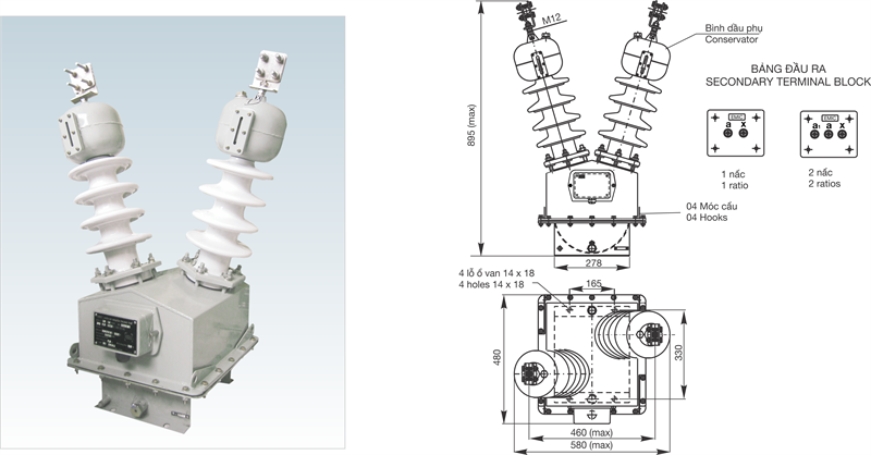 Các đầu ra thứ cấp được nối liền với thân máy (loại đúc epoxy, composite) được bảo vệ bằng hộp đấu dây có nắp che bằng nhôm