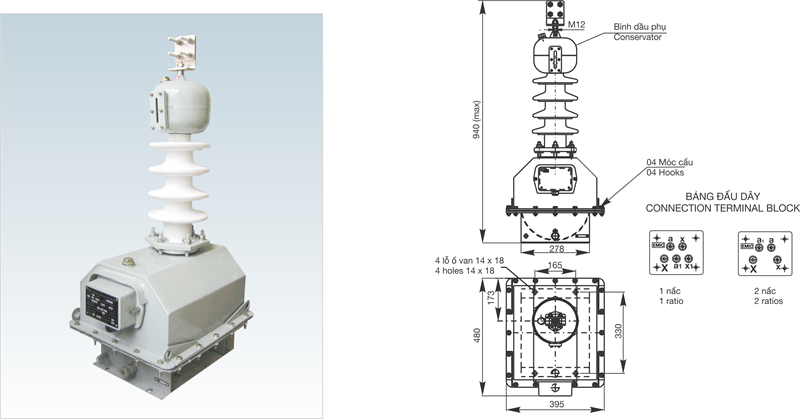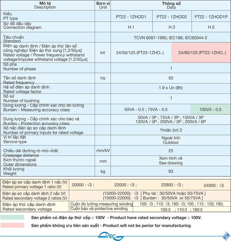Máy biến áp đo lường trung thế 1 pha ngoài trời kiểu ngâm dầu - Model PT22 1ZHOD